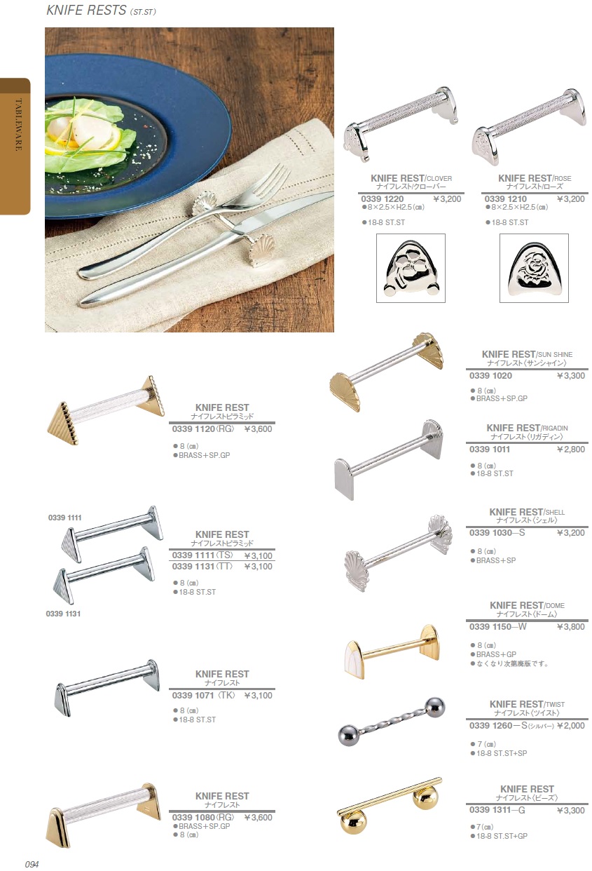 二枚貝を象った意匠を両端の脚にあしらったナイフレストです。 |