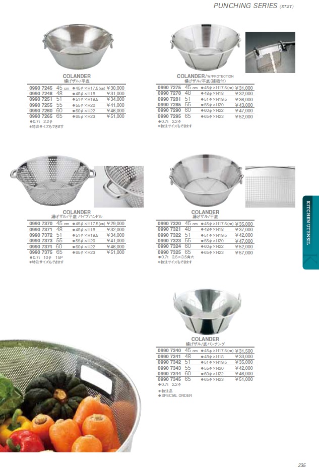 揚げザル/平底(角穴)45cm JAN:09907320 |