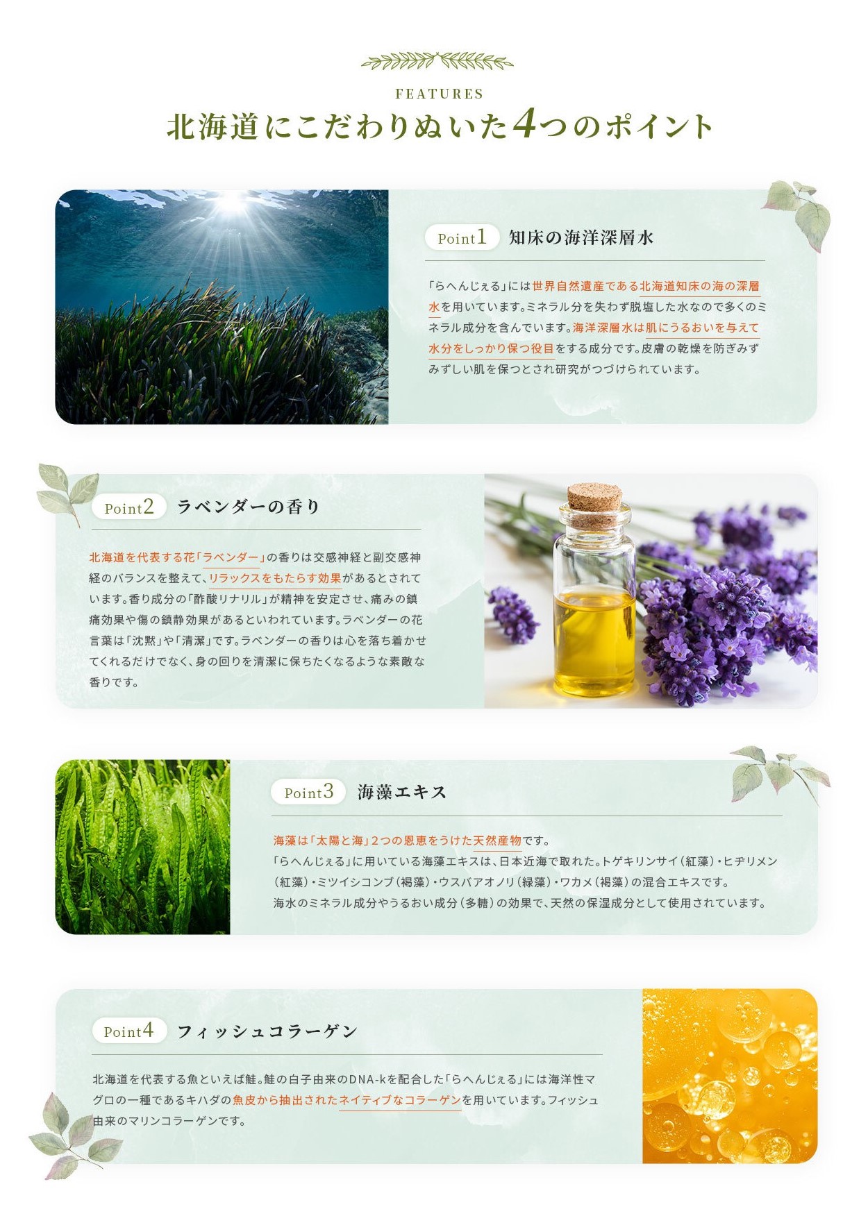 ラベンダーの香りがほのかに漂う「らへんじぇる」は地域活性化を手がけるアイ・エス・ケー合同会社が、北海道と天然成分にこだわり、商品化したオールインワンジェルです。ぜひショップでお取り扱いいただき、一人でも多くの方に幸せなひとときをお届けできたら幸いです。 |