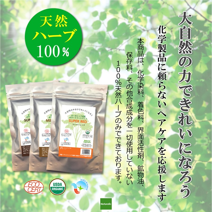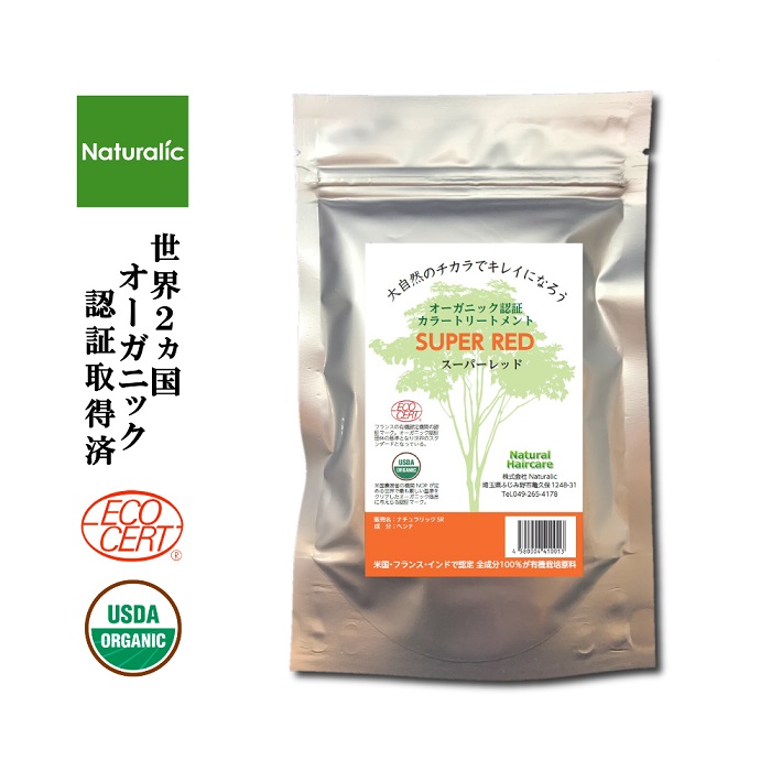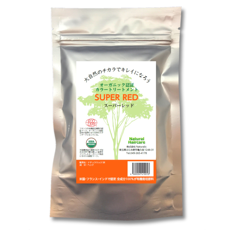 【30袋】ナチュラリック オーガニックヘナ スーパーレッド ヘナカラー 白髪染め トリートメント オーガニック 無添加 オーガニック認証 エコサート USDA(米国農務省) 化粧品登録品 JAN:4580004410013 |