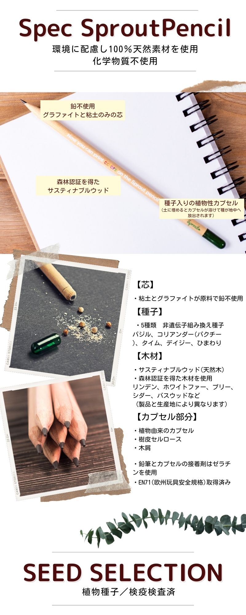 ・この鉛筆は生分解性素材なので土に還ります。
