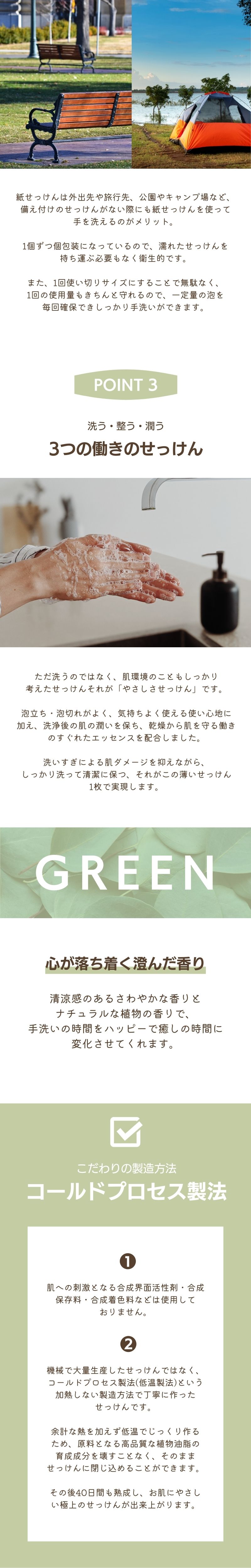 「使い切りで衛生的、いつでもしっかり手洗い」 |