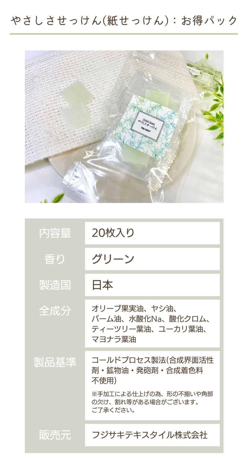 やさしさせっけん(紙せっけん):お得パック 20枚入り JAN: |