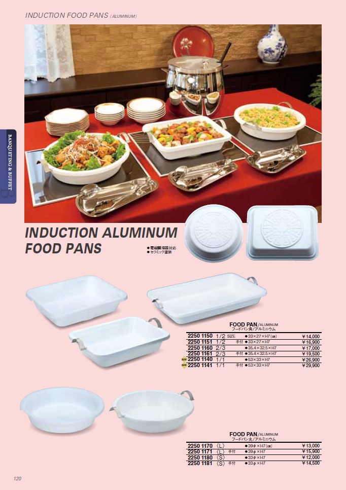 電磁調理器対応なので温めの際は従来の湯煎式ビュッフェスタンドを必要とせず、電磁調理器の上に直接置いてビュッフェテーブルへ提供できます。